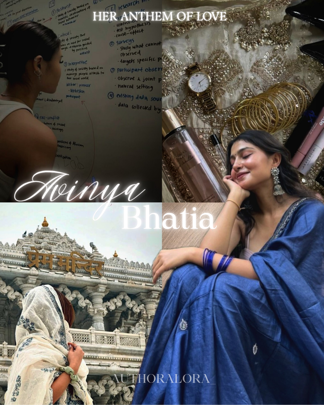 Avinya Bhatia, A 22-year-old, 5'4" tall extrovert whose laughter feels like sunshine and whose presence can brighten even the dullest corners of a room. After completing her B.Tech in Computer Science from IIT Delhi, she has returned to Udaipur to live with her parents, ready to chase new dreams as an MBA student at IIM Udaipur.